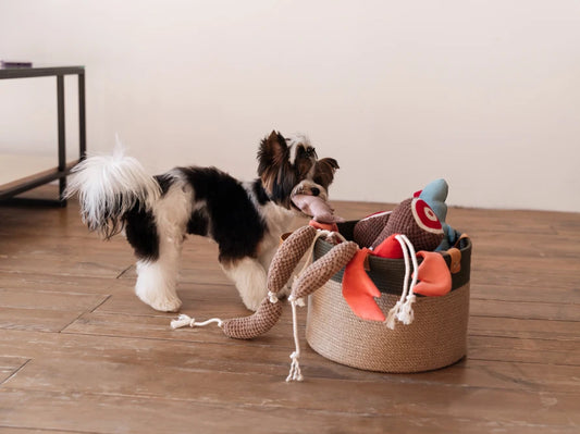 A basket for storing toys and other pet items is a great alternative to plastic boxes.