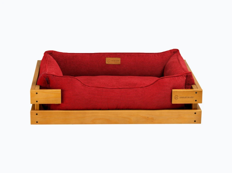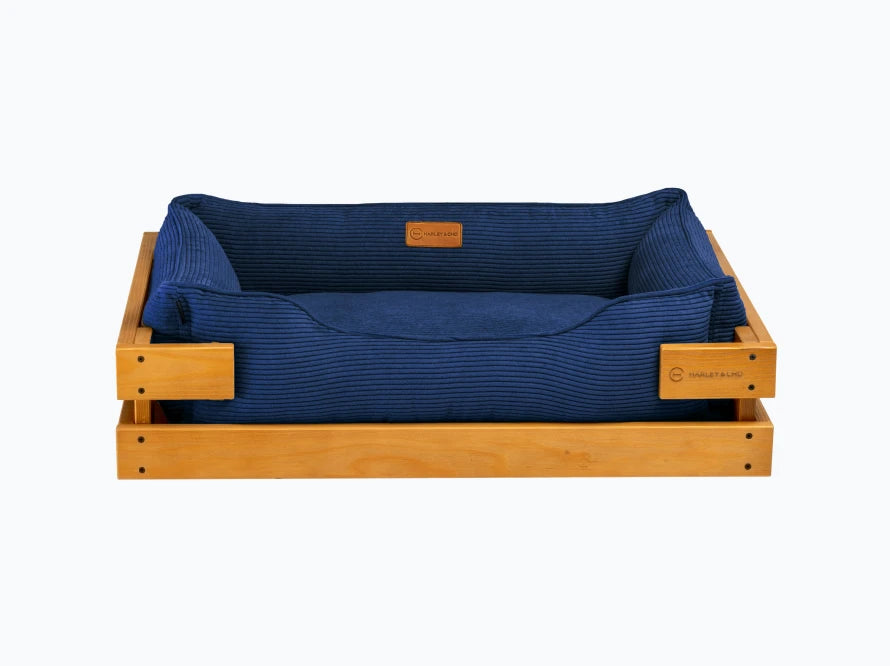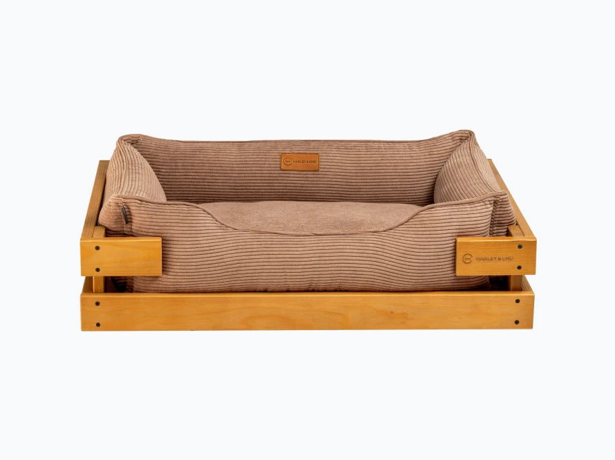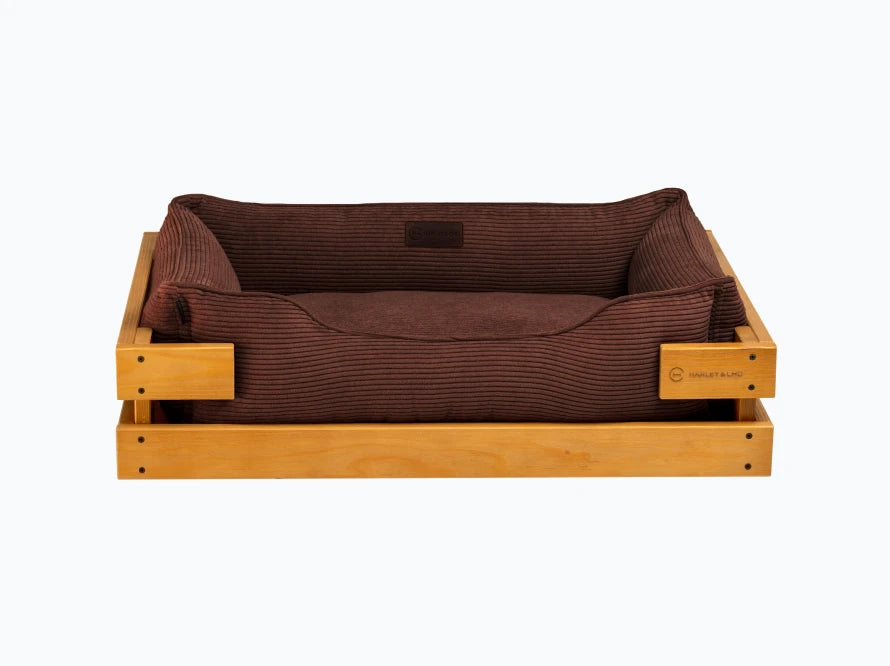 The bed is decorated with a branded pendant made of Harley and Cho leather -