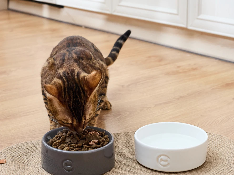 Even cat whiskers feel at home with Harley and Cho's ball-bottomed bowls!